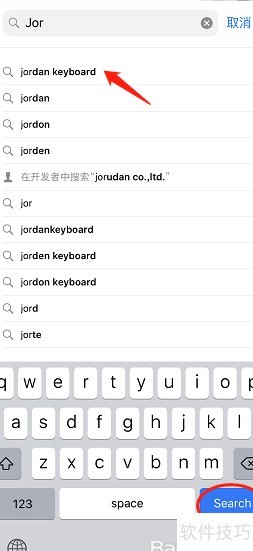 5、 进入搜索页面后,在输入框中键入Jordan Keyboard,随后点击搜索按钮即可完成操作。