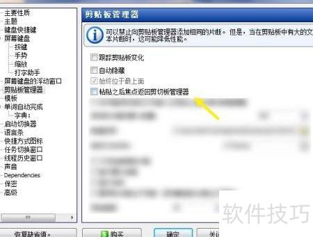 2、 在选项页面勾选粘贴后焦点返回剪切板管理器功能。