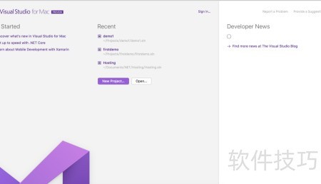 4、 接下来,按照提示会要求安装Java SDK和Android SDK,但由于我并不涉及移动应用开发,因此跳过了这一环节。随后,我直接下载并安装了Visual Studio for Mac Preview 1版本。安装包下载完成后,双击启动安装程序,依照向导完成后续步骤即可。整个过程较为顺畅,安装结束后,Visual Studio for Mac便已成功配置。不过需要注意的是,该环境的前提是系统中已安装.NET Core运行时与开发工具包,相关安装方法可参考微软官方文档。完成所有准备工作后,便可开始在macOS平台上使用Visual Studio进行.NET Core应用程序的开发。整个开发环境搭建完毕后的界面效果所示。