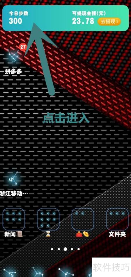 1、 点击手机桌面的今日步数。
