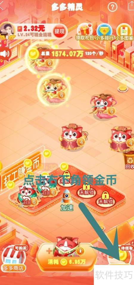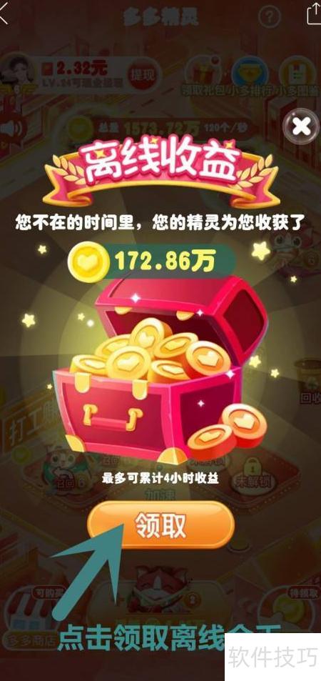 4、 领取离线精灵打工所得金币。