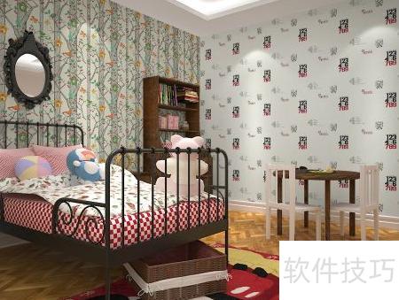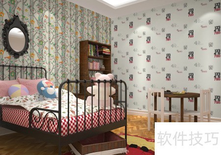 3、 在此场景中添加两款不同墙纸,只需右键点击目标墙面即可完成操作。