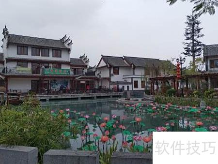 2、 布洛陀广场左侧为文轩苑。走过异域风情街,眼前呈现一池荷花,绿叶田田,粉花点点。此处乃花婆溪南端,沿溪前行,一座高耸的祖公塔赫然矗立。立于塔前正门向左望去,溪流蜿蜒北去,水清见底,两岸白墙黑瓦错落相映,古韵悠然。