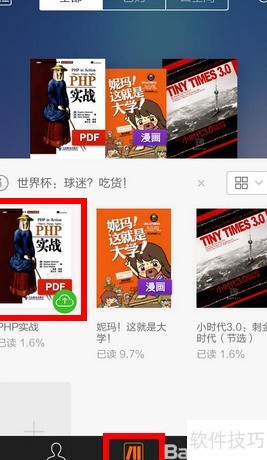 2、 打开多看阅读,进入书架查找手机中的PDF文件,选中一本影印版PDF即可。
