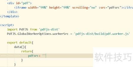 3、 打开Vue文件,引入pdfjs-dist并配置相应路径。