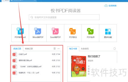 2、 阅读PDF的记录也会同步显示在软件首页的阅读记录中,方便用户随时查看所有阅读与转换的历史信息。