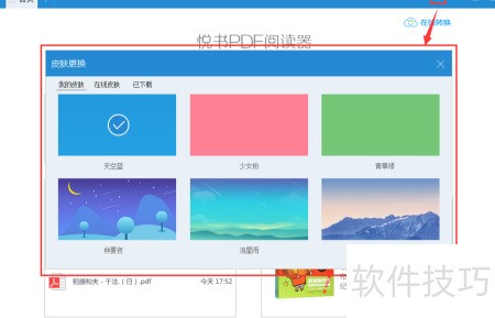 5、 主菜单第二个图标是皮肤更换,可按个人喜好选择不同颜色的背景皮肤,自由切换。虽然功能实用,但我个人还是更习惯使用默认的天空蓝主题。