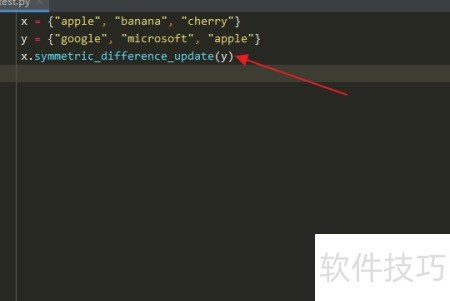 5、 继续输入x.symmetric_difference_update(y),然后按下回车键执行操作。