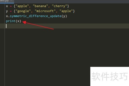 8、 在运行结果窗口中,通过Python集合的symmetric_difference_update()方法,已将两个集合中共有的元素移除,并将独有的元素加入原集合,从而完成了集合的更新操作。