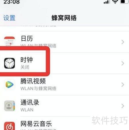 3、 进入蜂窝网络设置,选择时钟选项进行配置。