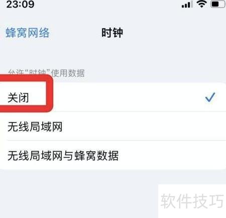 5、 在时钟设置页面,关闭网络权限即可完成操作。