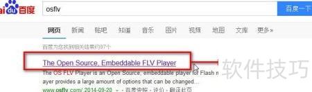 2、 在百度搜索栏输入osflv并回车,点击首个搜索结果进入OS FLV官方网站,找到下载选项并点击,选择v4.2版本进行下载。下载完成后将压缩包解压至桌面,其中名为OSFlvPlayer的文件夹即为所需内容,保留该文件夹以便后续使用。