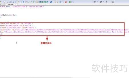 12、 修改index.html文件中标签内的value=和movie=参数,按图示内容进行更新,完成后保存文件即可。