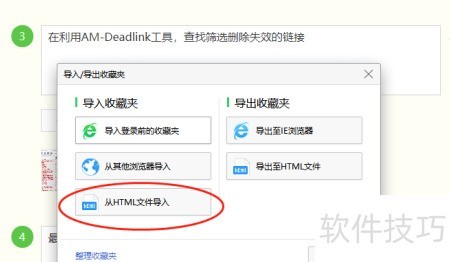 通过浏览器的导出导入功能,结合AM-Deadlink工具,可有效清除收藏夹中的无效和重复链接。