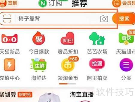 3、 打开淘宝首页搜索框,输入所需商品进行查找。