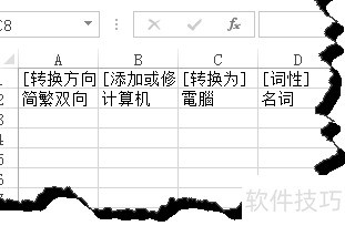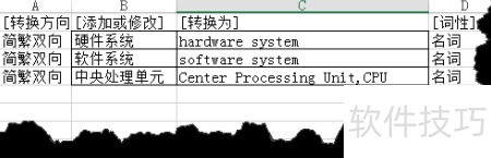 7、 将转换三拒眠方向和词性两列按图示填写,添加或修改栏填入需转换的中文内容,转换为栏填入对应的英文替换词,最后保存文件即可。