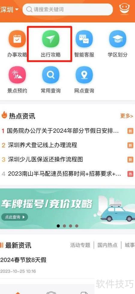 1、 打开深圳本地宝,选择出行攻略栏目。