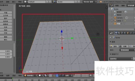 1、 在Blender中新建一个平面作为地面,尺寸可根据需要自行调整。