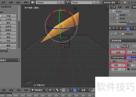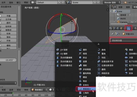 4、 在右侧属性栏点击修改图标,添加表面细分选项。
