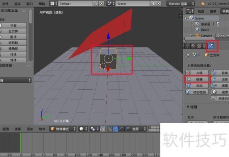 9、 选取立方体,在右侧属性栏中点击物理选项。