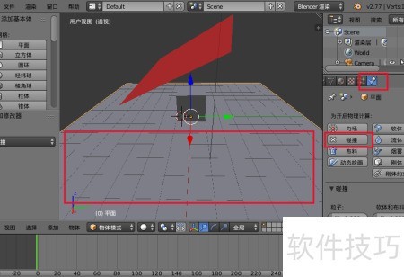 11、 选中地面平面,在属性栏中选择属性,点击添加碰撞功能。