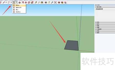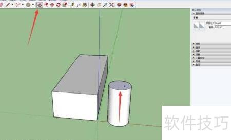 2、 选择顶部菜单的锥拉工具,按住鼠标在模型上向上拖动即可绘制矩形。