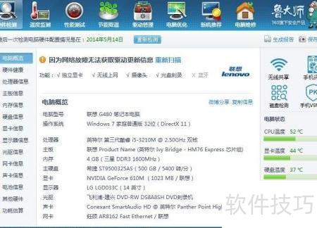 2、 若接口连接正常,则可从驱动入手,使用鲁大师等安全检测工具进行排查与修复。