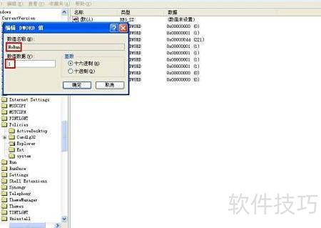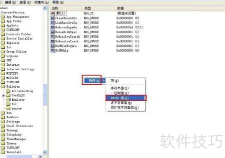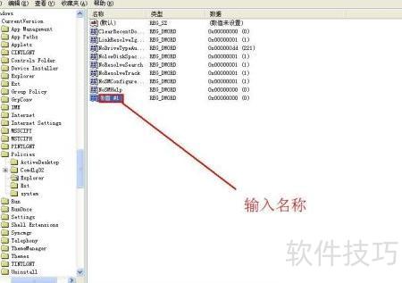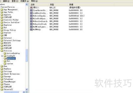 2、 打开注册表编辑器后,依次展开以下路径:HKEY_CURRENT_USERSoftwareMicrosoftWindowsCurrentVersionPoliciesExplorer。在右侧空白区域点击鼠标右键,选择新建中的DWORD值。随后,在弹出的命名框中输入所需的键值名称,完成创建操作即可生效。