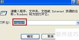 1、 按下开始菜单中的运行,在对话框输入regedit后点击确定,即可启动注册表编辑器。