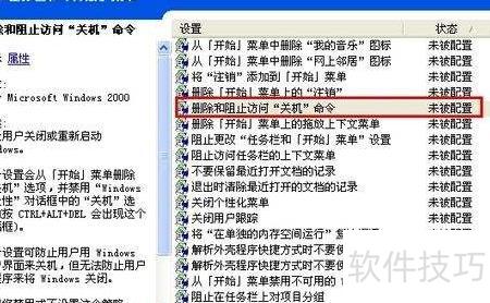 4、 在右侧面板中开启删除并禁止使用关机命令选项。