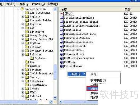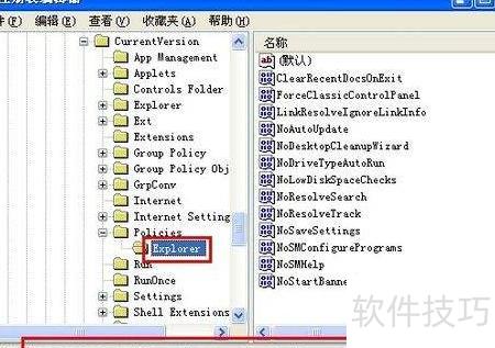 7、 依次打开注册表路径:HKEY_CURRENT_USERSoftwareMicrosoftWindowsCurrentVersionPoliciesExplorer。