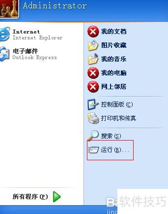 1、 点击开始菜单,找到并选择运行选项,操作所示。