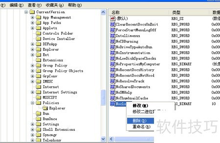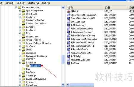 3、 在注册表编辑器中,依次展开路径:HKEY_CURRENT_USERSoftwareMicrosoftWindowsCurrentVersionPoliciesExplorer,操作过程所示。请谨慎修改,避免影响系统正常运行。确保操作前已备份相关注册表项,防止出现意外问题导致功能异常或系统不稳定。