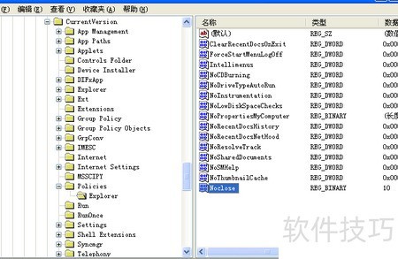 4、 在右侧窗口中查找名为Noclose的字符串值,位置所示。