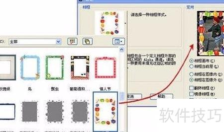 3、 进入学习中心首页,点击文本和图形选项,选择添加相框和照片边缘。从下拉菜单中挑选喜欢的边框样式,支持实时预览效果。确认后即可为照片增添个性风格。同时可使用影片向导功能,快速制作精美电子相册,操作简便,轻松完成作品。