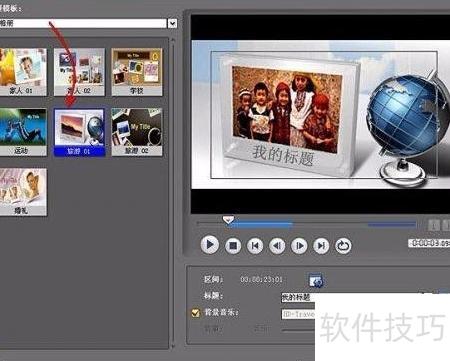 7、 在主题模板中选择HD相册主题,再从目录里挑选旅游样式。该模板配备动画文字与背景音乐的片头片尾,让您的电子相册更具视觉美感与观赏体验。