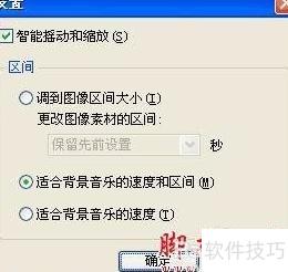 8、 点击运行设定对话框,确认已启用智能摇动和缩放功能。该功能可为每张图像添加动态动画效果,增强画面的生动感与视觉冲击力。