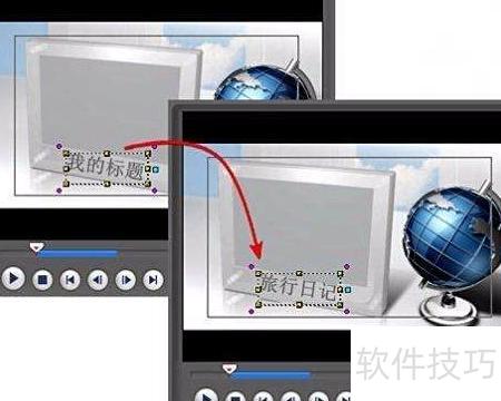 11、 主题模板包含电子相册的片头和片尾两个动画标题。编辑时,双击预览窗口中默认的MyTitle文字,将其更改为2008年旅游即可完成替换。