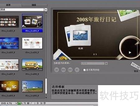 15、 在「菜单模板」目录中挑选一个喜爱的菜单样式,点击预览窗口中的「我的标题」,将其修改为「2008年欧洲旅游」。同样方法更改「未命名标题」,完成后点击「下一步」继续操作。