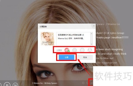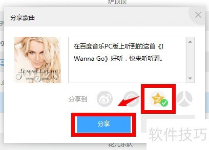 9、 可快速分享当前播放的歌曲,操作简便,所示。