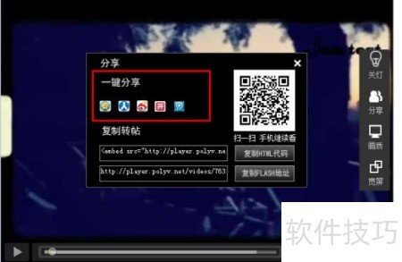 4、 播放视频时,点击右侧分享菜单,效果所示。