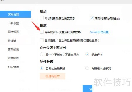 7、 勾选将百度音乐设为默认播放器,此后播放歌曲将自动使用百度音乐。