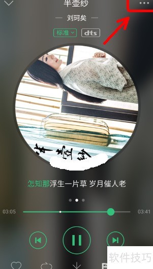 1、 播放歌曲时,点击界面右上角的三个横点即可。