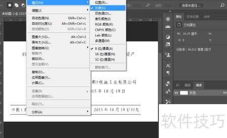 5、 将图像添加至图层面板后,于图像菜单中选取模式,切换为灰度。