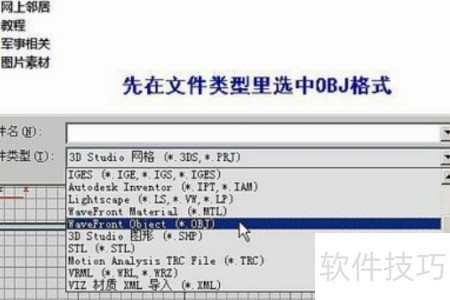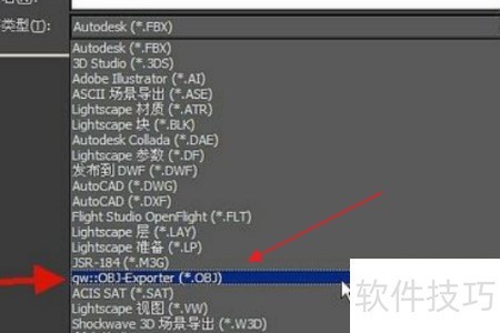 1、 在较新版本的3DMAX中,将文件导出并选择保存类型为OBJ格式,所示,完成后点击下一步继续操作。