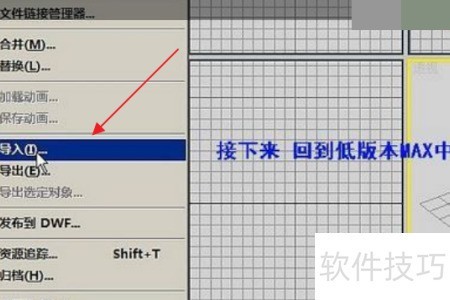 4、 启动低版本3DMAX,点击文件菜单中的导入功能,选择之前导出的高版本模型文件,按提示操作即可继续后续步骤。