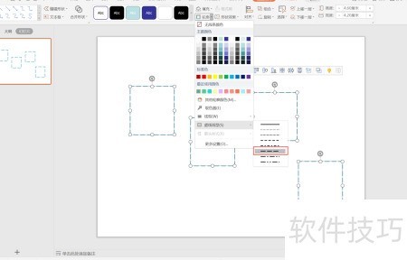 4、 将轮廓线条设为蓝色,宽度1.5磅,并选用适当的虚线样式进行填充。
