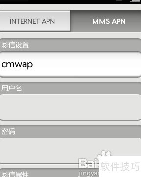 14、 彩信设置(MMS APN):使用小写cmwap进行配置。