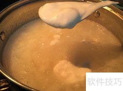 4、 将棕榈籽与椰奶加入锅中,继续炖煮片刻即可。