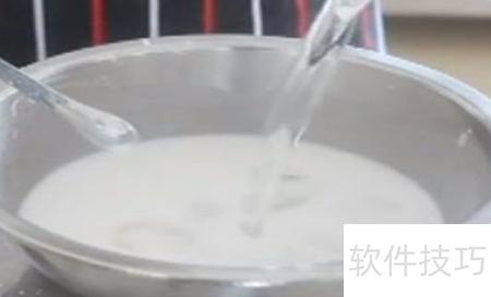 1、 将水晶月饼粉与72克常温水混合,充分搅拌至均匀。